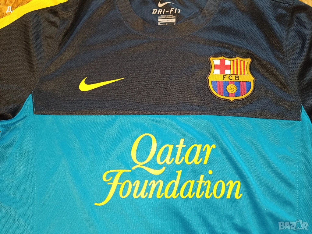 Оригинална футболна тениска Nike FC Barcelona, изработена от лек и дишащ Dri-FIT материал, който отвежда влагата и осигурява комфорт при носене. Моделът е в свежа комбинация от тъмносиньо и тюркоазено със жълти акценти, с емблема на отбора и лого на Nike отпред. Централно е разположен надписът Qatar Foundation, придаващ автентичен вид.