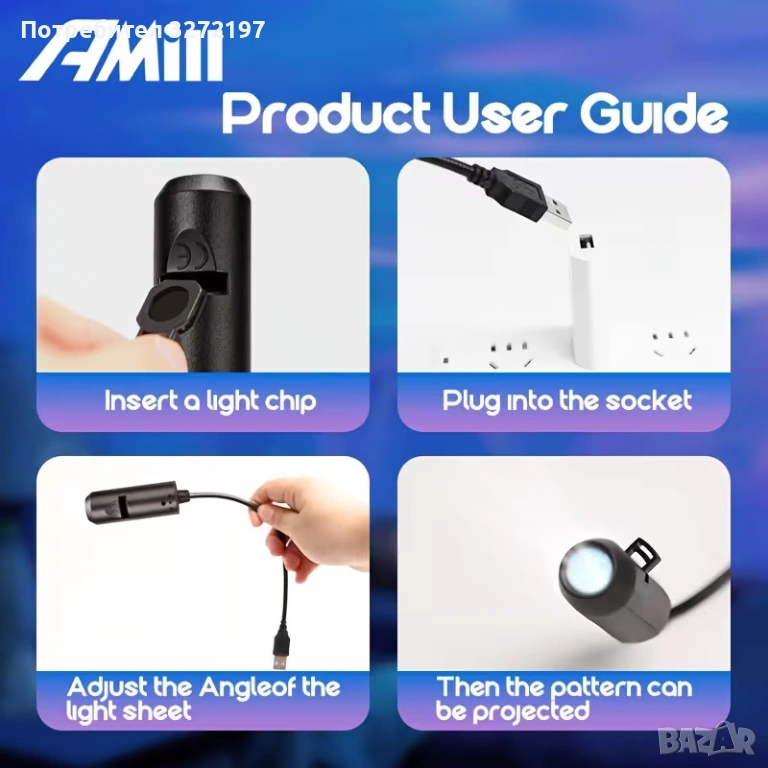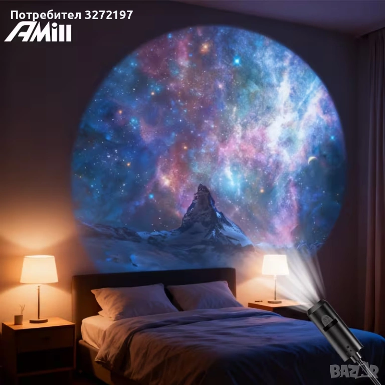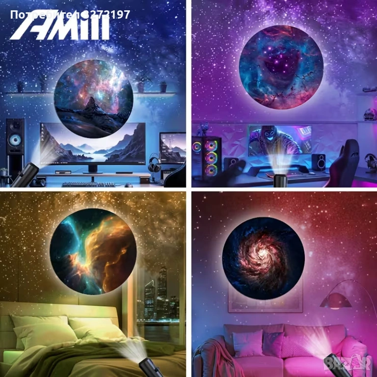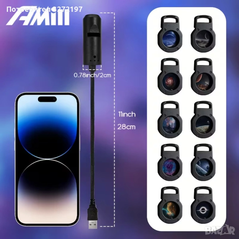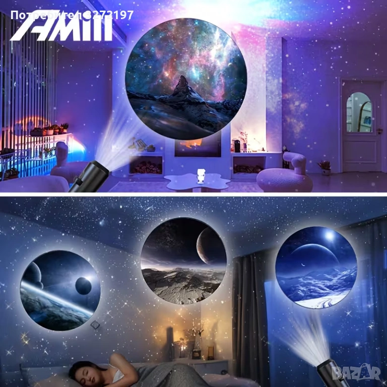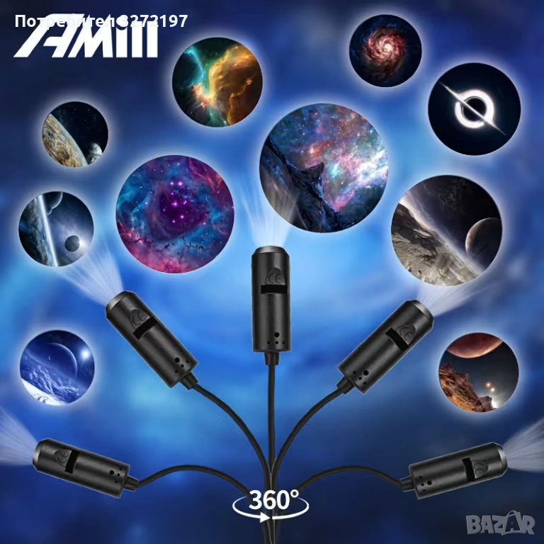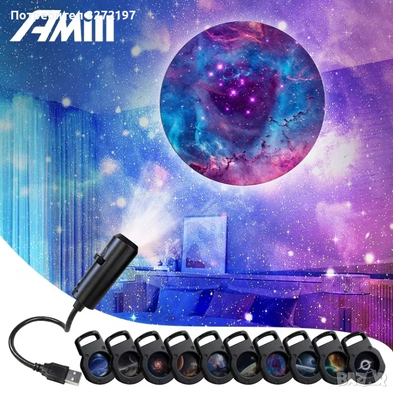 - LED със 10 сменяеми слайдове с Галактически изображения