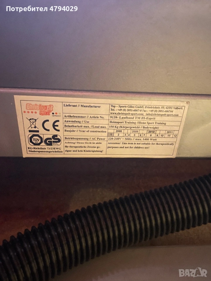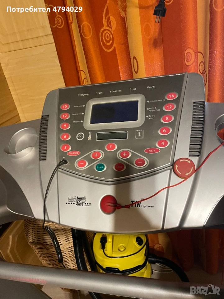 Продавам бягаща пътека Christopeit TM II Esprit в добро работещо състояние. Подходяща за домашни тренировки – ходене, джогинг и поддържане на форма.