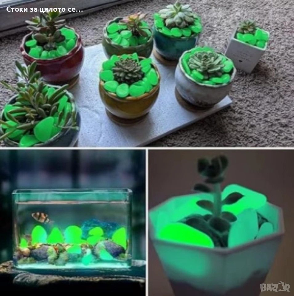 Светещи в тъмното атрактивни декоративни камъчета 100 броя