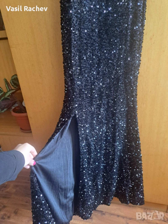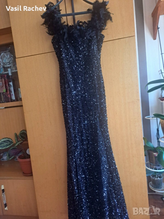 С удоволствие ви представяме нашата изискана официална дълга рокля. Размер S.Тя е създадена с мисъл за елегантността и финеса. Материите са подбрани така, че да осигурят комфорт и изтънчен вид. Дизайнът е подчертано женствен и стилен. Уверени сме, че ще се чувствате прекрасно в нея.