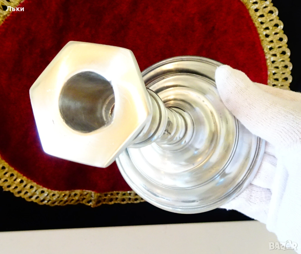 и 5% сребро.Вечен масивен свещник с имплантирана бронзова втулка по цялата