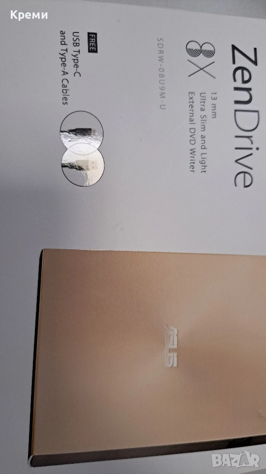 Външно USB DVD записващо устройство ASUS ZenDrive U9M Ultra-slim, USB Type-C, Златен цвят → Обява 54167456