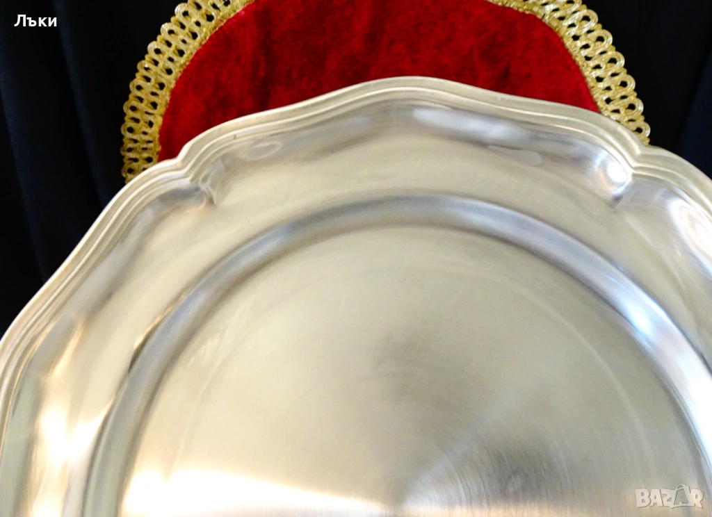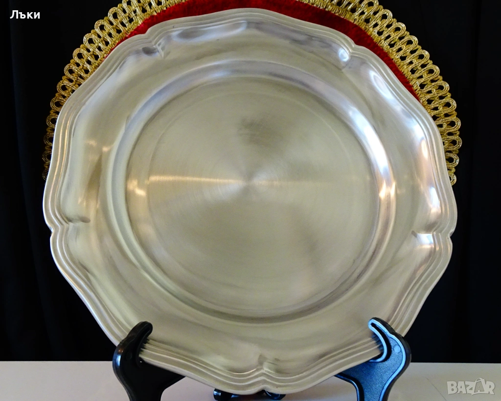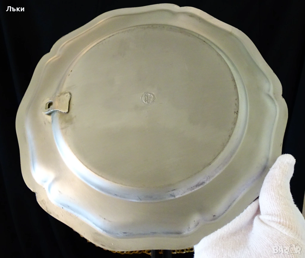 от 95% калай и 5% сребро,маркирана с релефен печат на производителя.Предназначена
