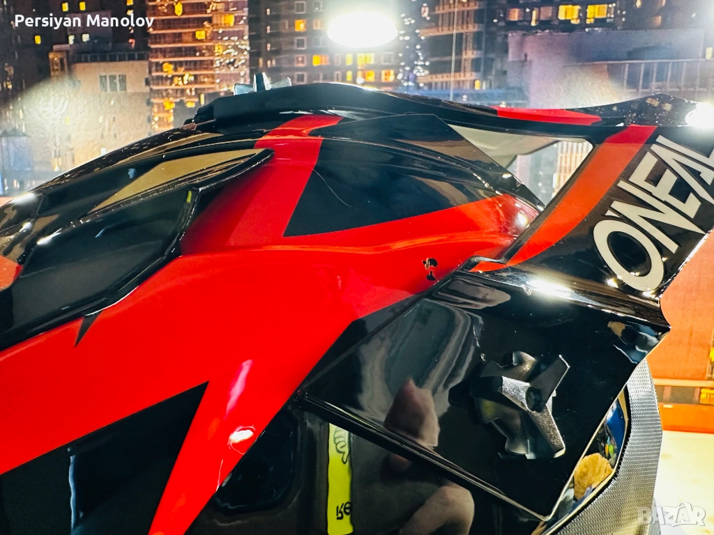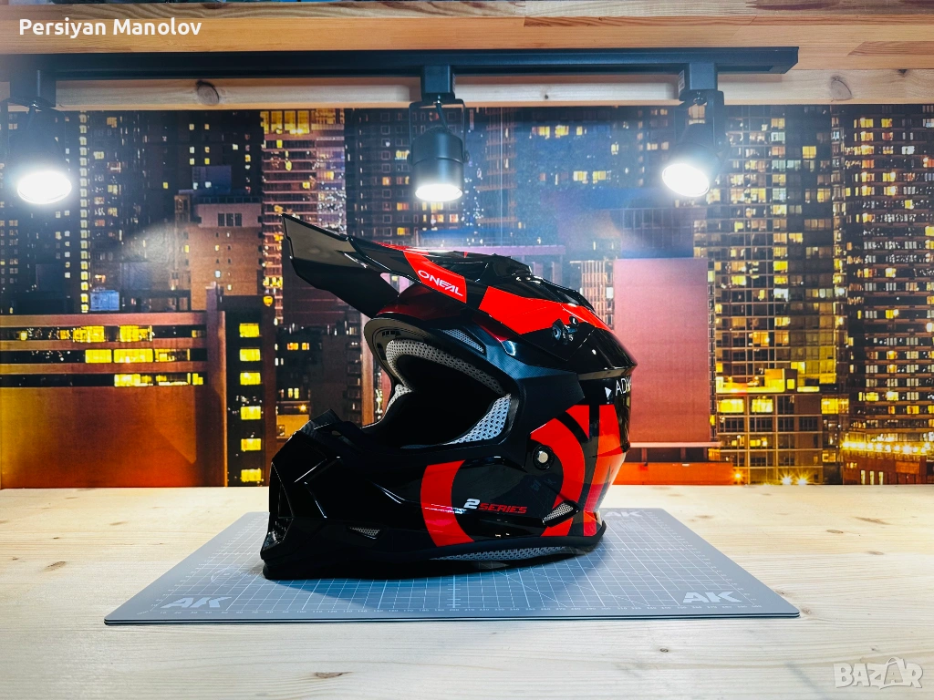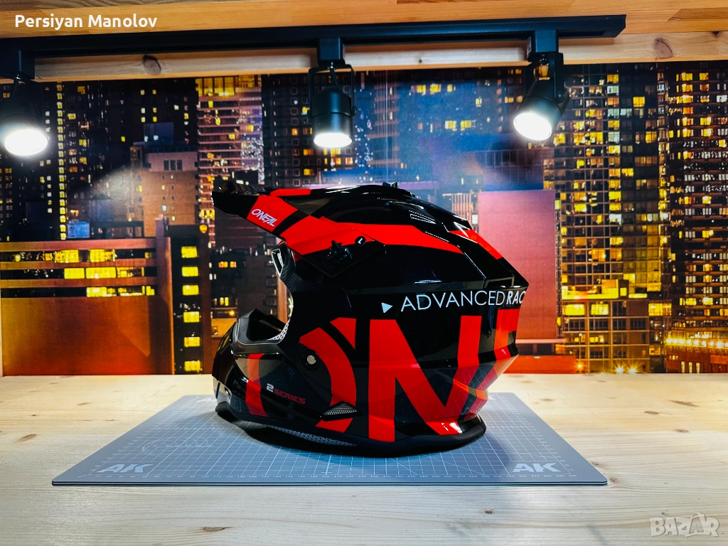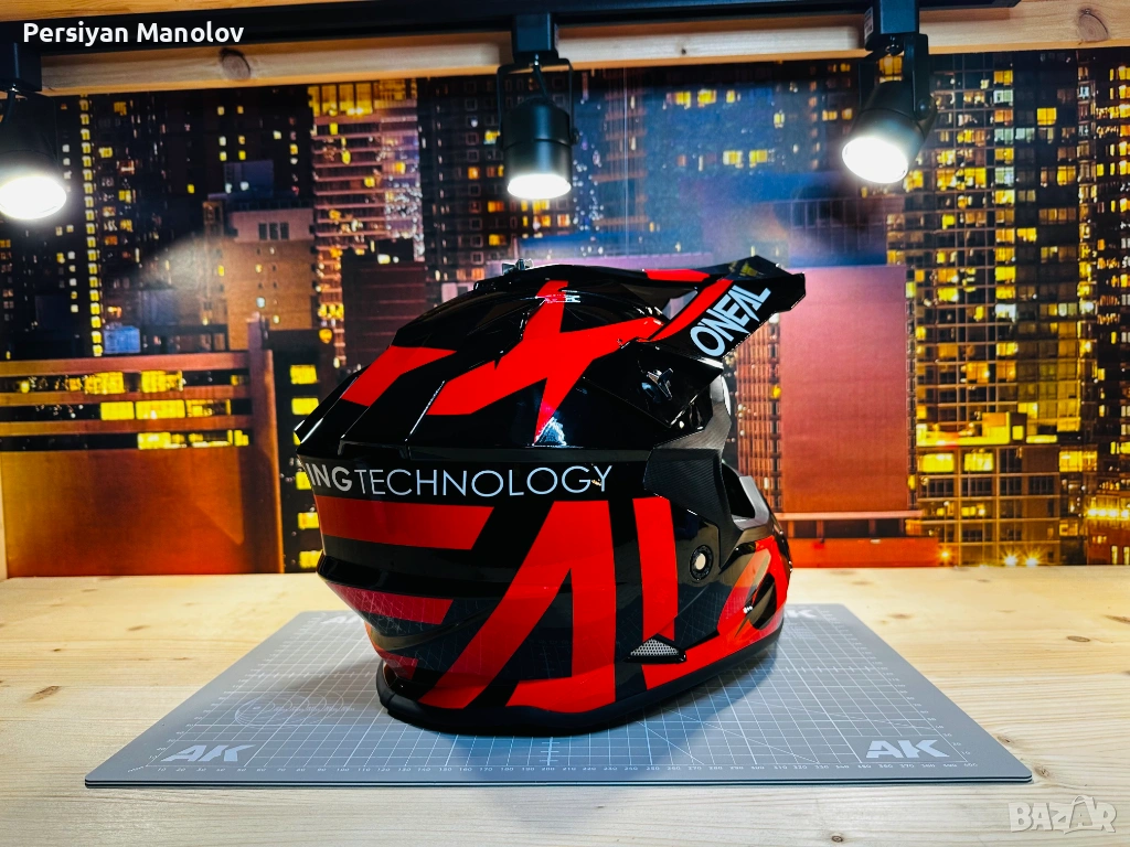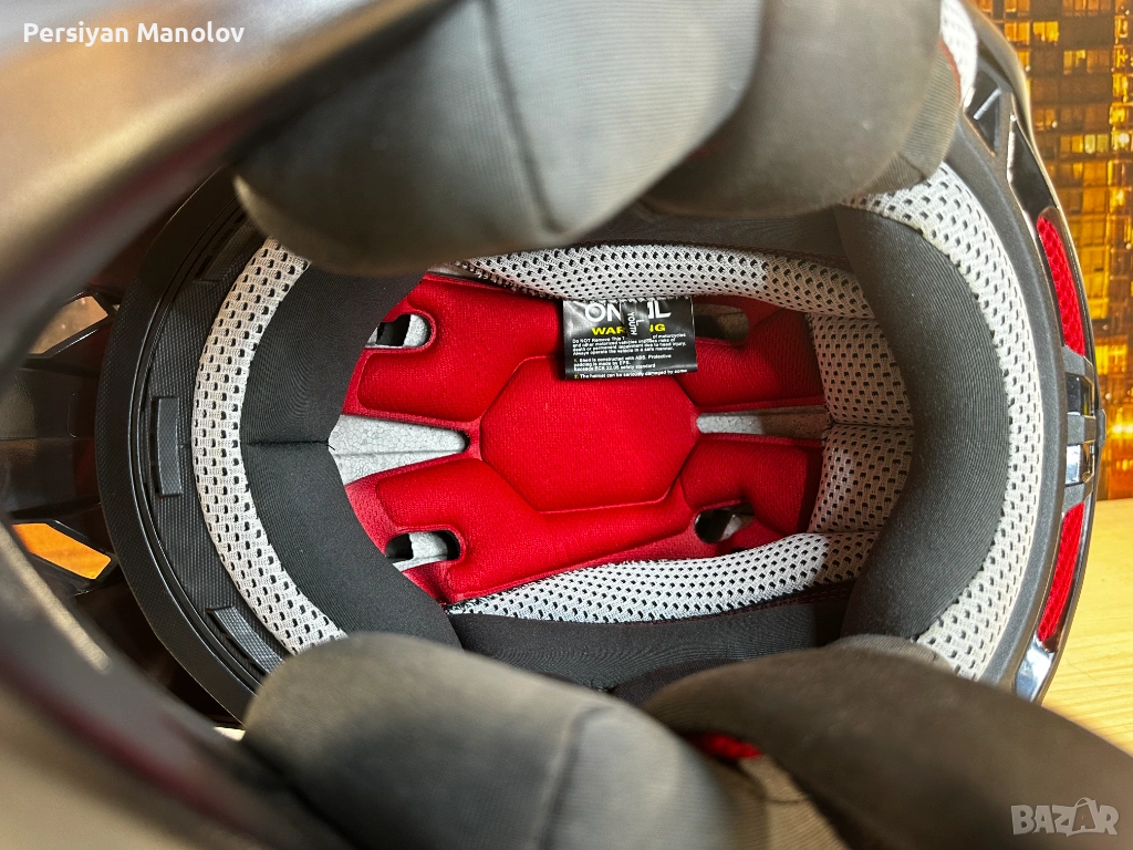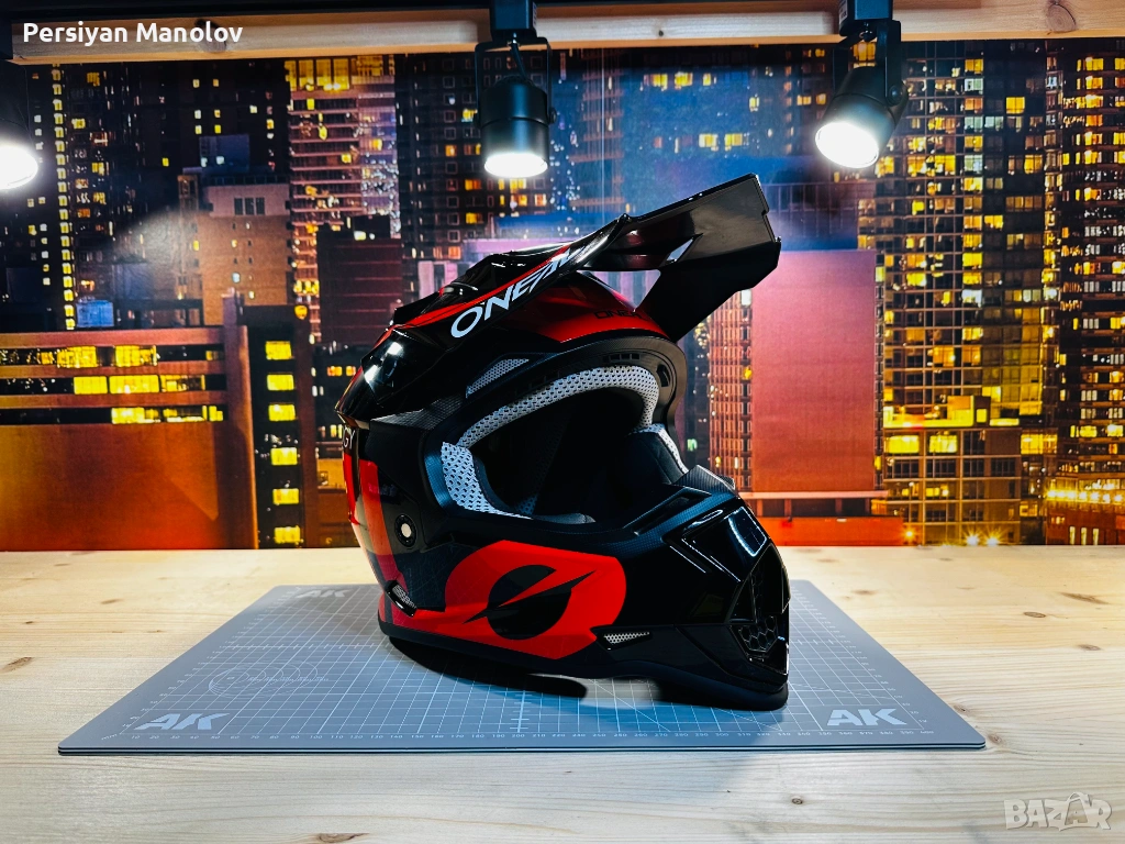 Каската е на по-големия. Беше на 8-9 години като му я взехме — взехме O'Neal защото не вярвам на безименните китайски каски когато става въпрос за главата на детето. Изкара няколко сезона и просто умаля.
