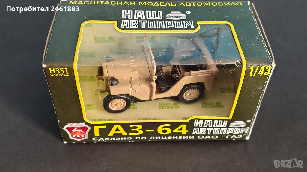 1/43 НАШ АВТОПРОМ метална колекционерска количка ГАЗ-64, нова → Обява 54167715