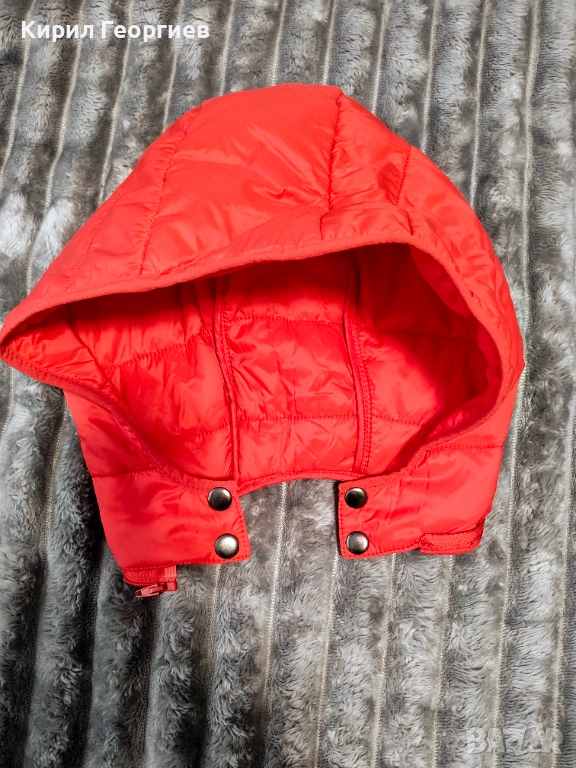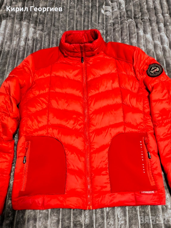 Доста леко и удобно яке.Красив червен цвят.Пьлнеж от патешки пух.