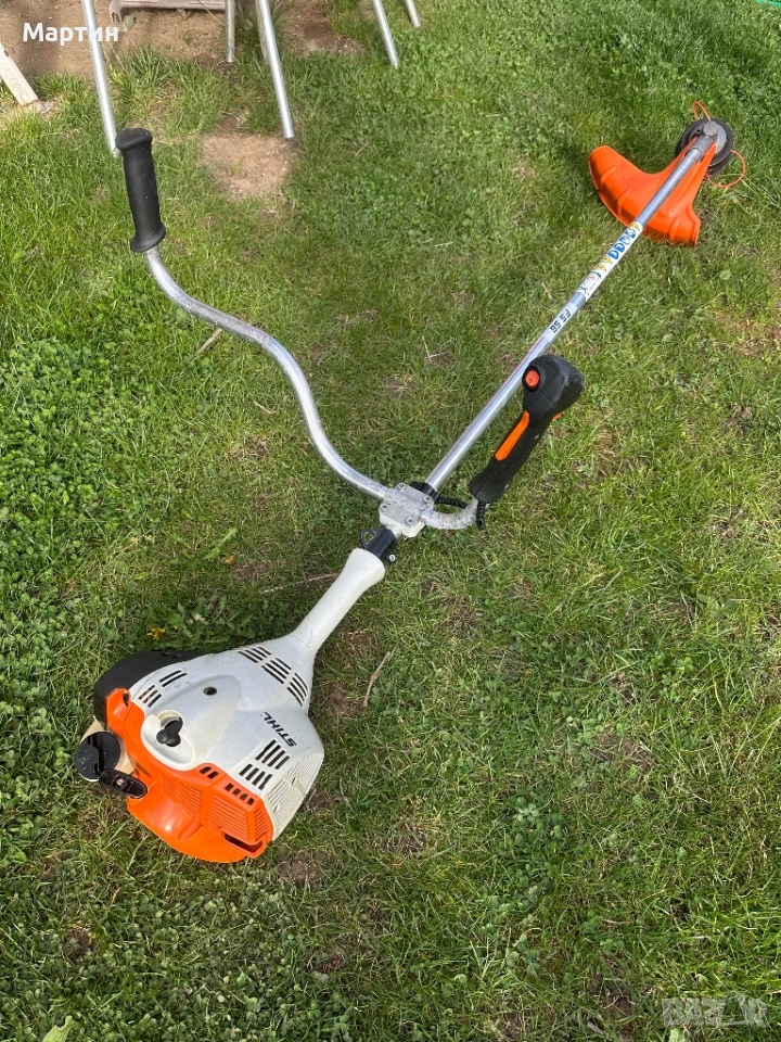 Продавам бензинова коса STIHL FS 56 с двойна ръкохватка (тип „кормило“) – много удобна за по-големи площи и продължителна работа.