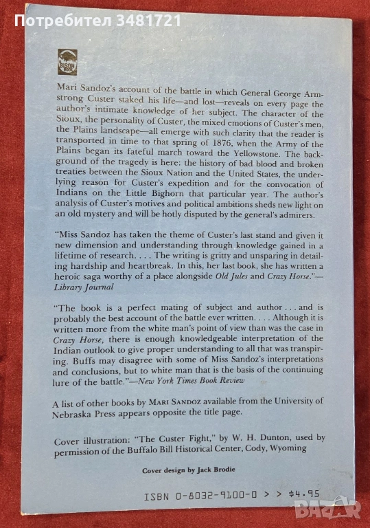 Това е увлекателно написаният разказ на Мери Сандоз за битката, в която генерал Джордж Армстронг Къстър залага живота си (и го губи), историята за характера на сиуксите, личността на Къстър, смесените емоции на хората на му, пейзажът на равнините и всичко останало нужно, за да се пренесе читателят в онази пролет през 1876та година, когато Армията на равнините започва своя съдбоносен поход към Йелоустоун.