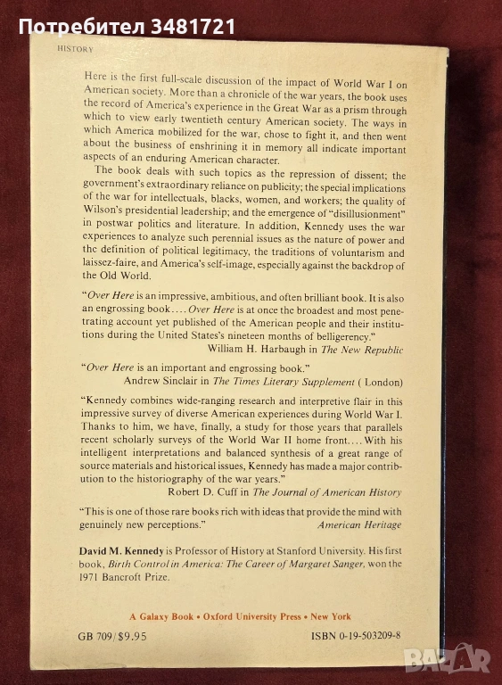 „Over Here“ е изчерпателна дискусия за въздействието на Първата световна война върху американското общество. Това е първото издание на книгата от 1980та година, като тя се радва на огромна популярност и продължава да се преиздава в над 20 нови издания през следващите няколко десетилетия. Книгата е както хроника на военните години, така и анализ на опита на Америка в Първата световна война като призма, през която да се погледне на американското общество от началото на ХХ век. Кои са начините, по които Америка се мобилизира за войната, избира да се бори в нея и как след това се заема с нейното запазване в паметта, това са само част от въпросите, разгледани в книгата. Считана за класическо произведение в американската историческа наука, книгата дава поглед върху това как борбата на едно общество с мъките на войната, оформя облика на новата Америка от 20ти век.