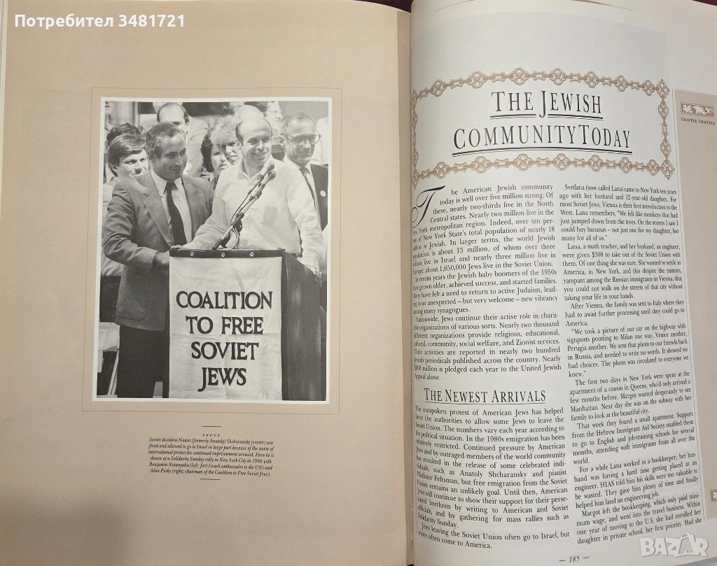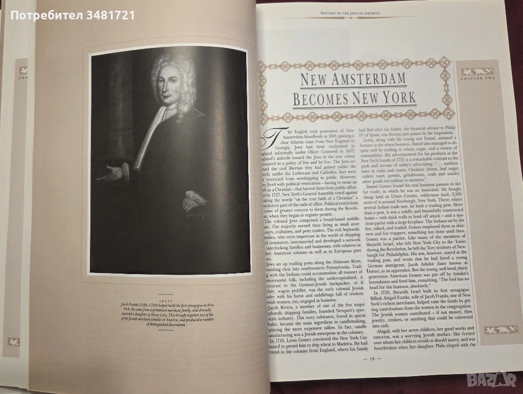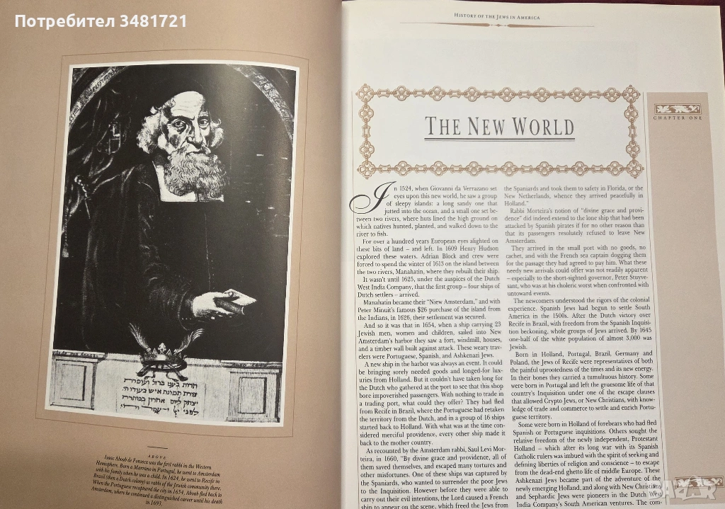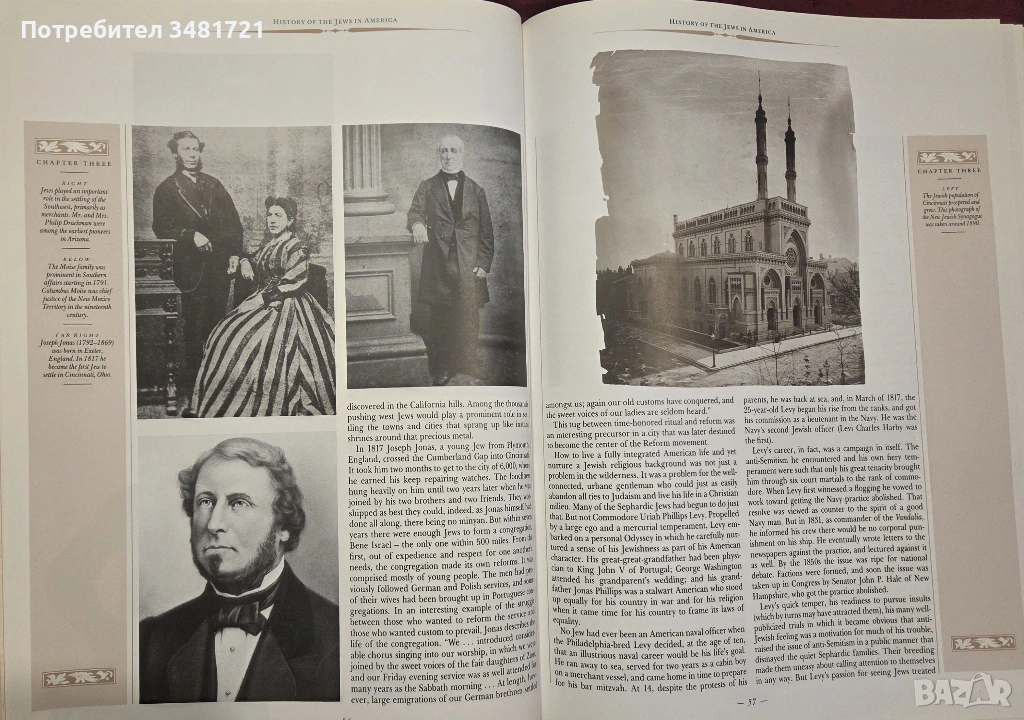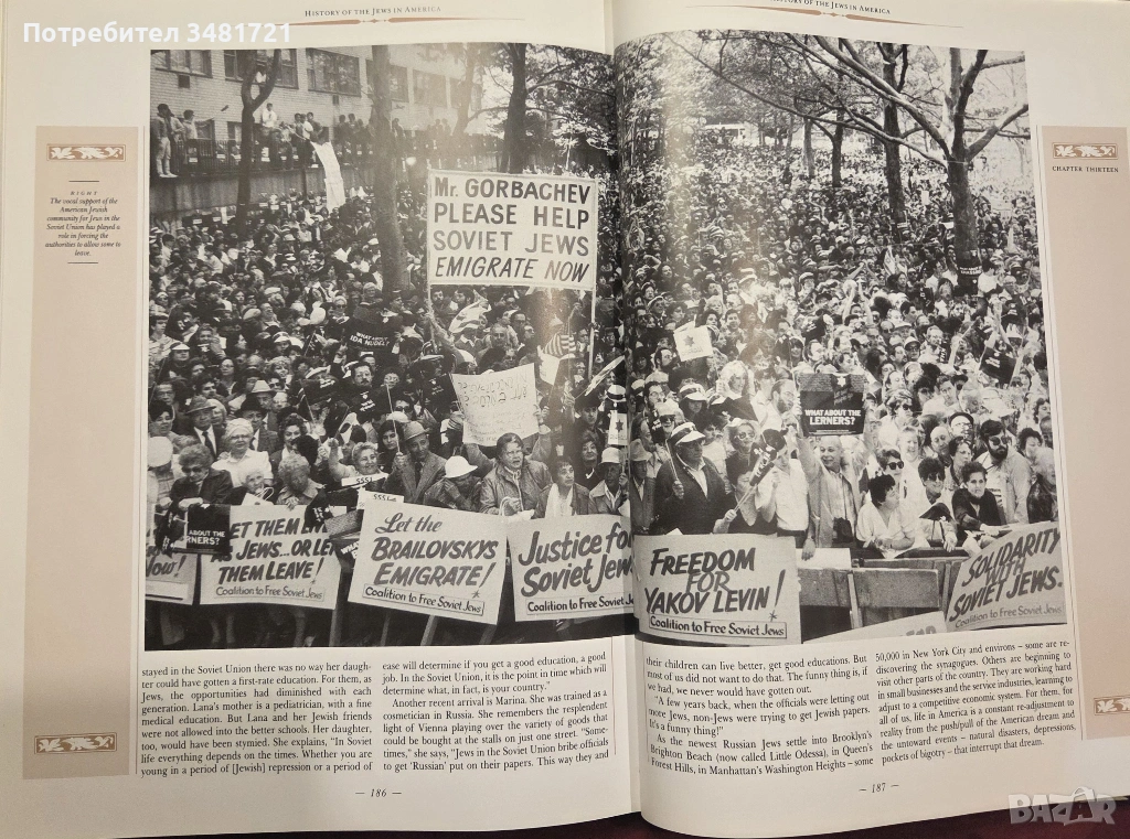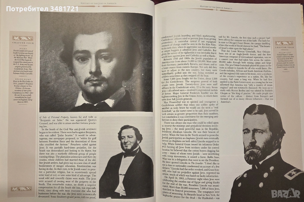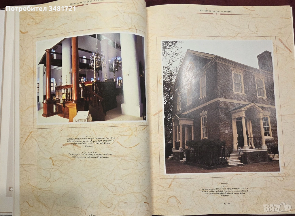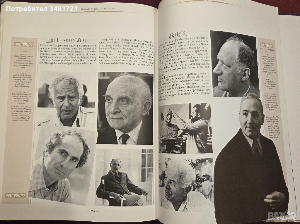 С много на брой и редки фотографии от различни епохи, книгата представя евреите като част от американския живот и култура, от ранното заселване на континента до наши дни. Подредена хронологично, тя започва с историята на първия равин в западното полукълбо и как New Amsterdam става New York, красивите синагоги от 17ти и 18ти век и ранни събития в щатската история. Разгледани са също процеси, свързани с религиозни реформи, приносът на евреите в политическия и културния живот на страната, военното дело, медицината и други науки, както и социални движения, които те формират и в които участват.