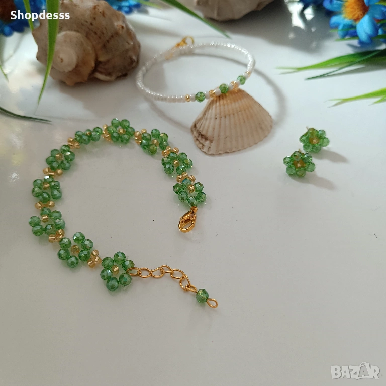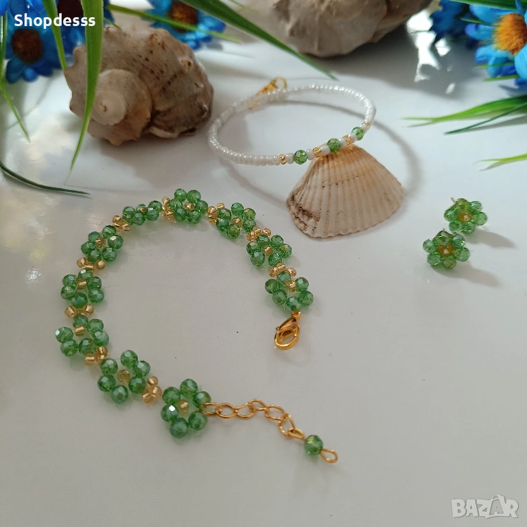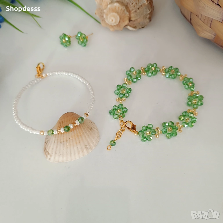 Елегантен ръчно изработен комплект от две гривни и обеци от кристали, създаден с внимание към всеки детайл. Кристалите улавят светлината и придават фин блясък, подходящ както за ежедневието, така и за специални поводи. Нежен, стилен и уникален – перфектният акцент към всяка визия.