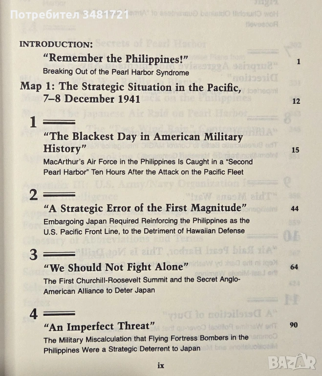 Авторът на книгата, използвайки скорошно декласифицирани документи, представя в нея как тайни англо-американски споразумения, пропуски в разузнаването и стратегически грешки на лидерите са довели до бедствията в Пърл Харбър и Филипините през 1941ва-1942ра година. Пренебрегнати сигнали, бездействието на Макартър и преждевременни стратегии „Европа на първо място“ водят до опустошителни загуби.