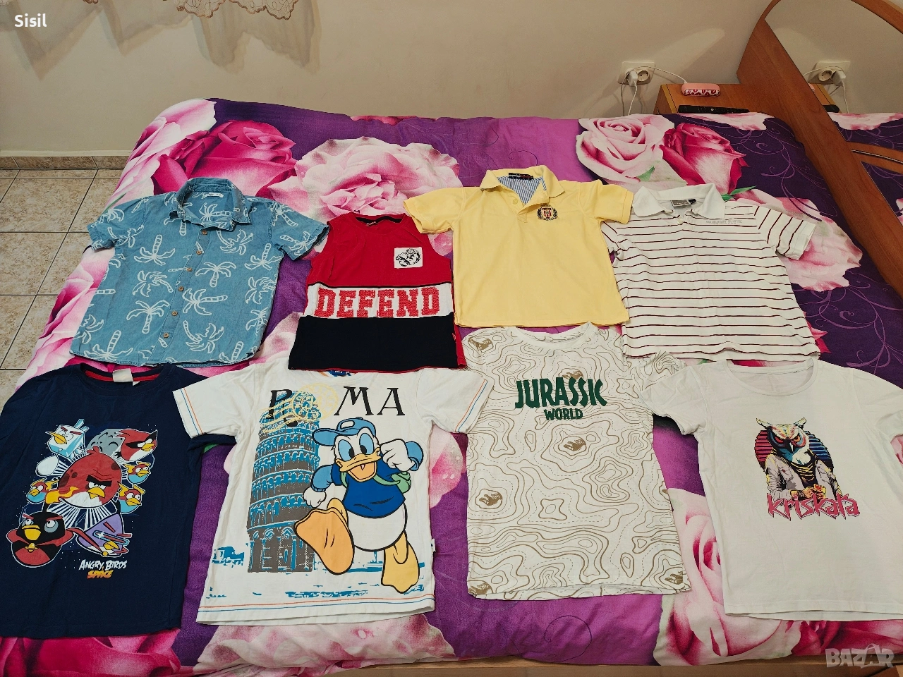 Цената е за всички дрехи от снимките. Носени,но във добро състояние със нормални следи от употреба. Има разнообразие от панталонки и тениски. Тениска на Криската, Tommy Hilfiger, Disney и брейнрот