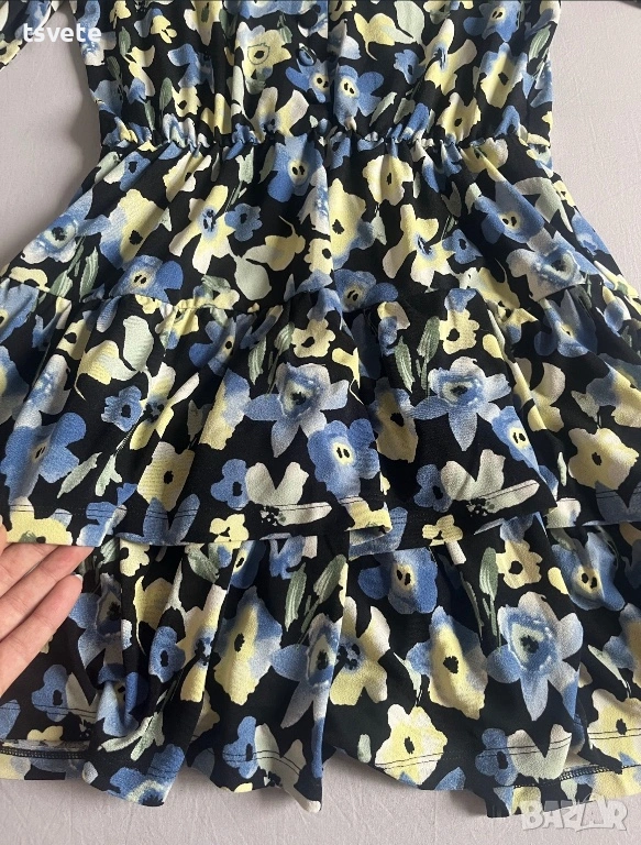 Флорална рокля на Reserved. Носена е един път. Размерът е L. Ластична е, с ластичен колан и воали надолу.