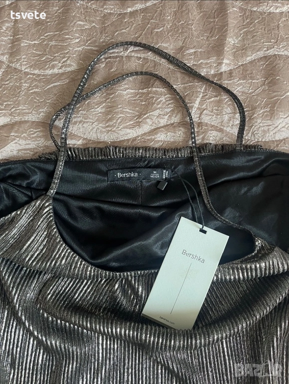 Рокля на Bershka с презрамки - М размер. Чисто нова е. Има дефект на плата. Качена е снимка.
