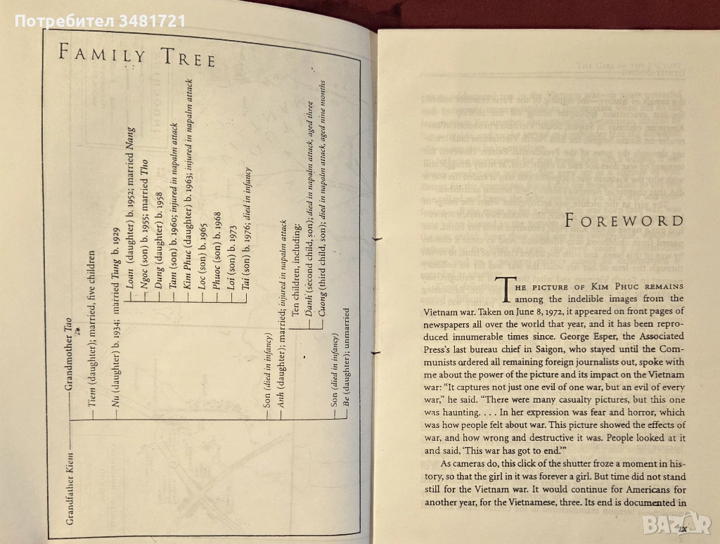 Книгата разказва историята на Ким, как се стига до тази снимка и какво се случва след това. След години на рехабилитация и дълга битка за оцеляване в опустошена от война и много корумпирана страна, Ким бяга на Запад през 1992ра година, ставайки в последствие говорител на ЮНЕСКО. Това е нейната лична история в текст и снимки - за това да бъдеш цивилна жертва във война, за пропагандата, както и за изключителен поглед отвътре за ежедневния живот във Виетнам по време и след войната.