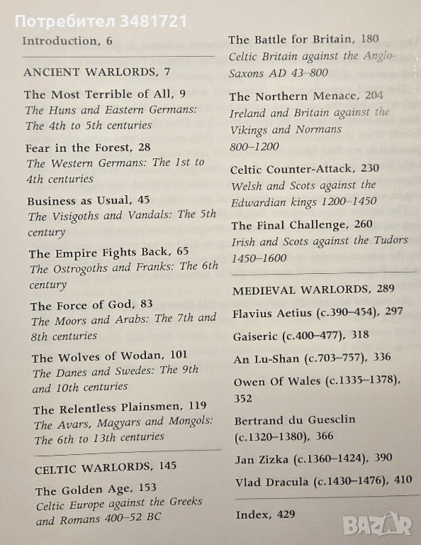 В текст и много илюстрации - от зловещите хунски и източногермански племена, през вандалите, аварите, арабите и келтите, до войните на ирландците и шотландците срещу династията на Тюдорите.