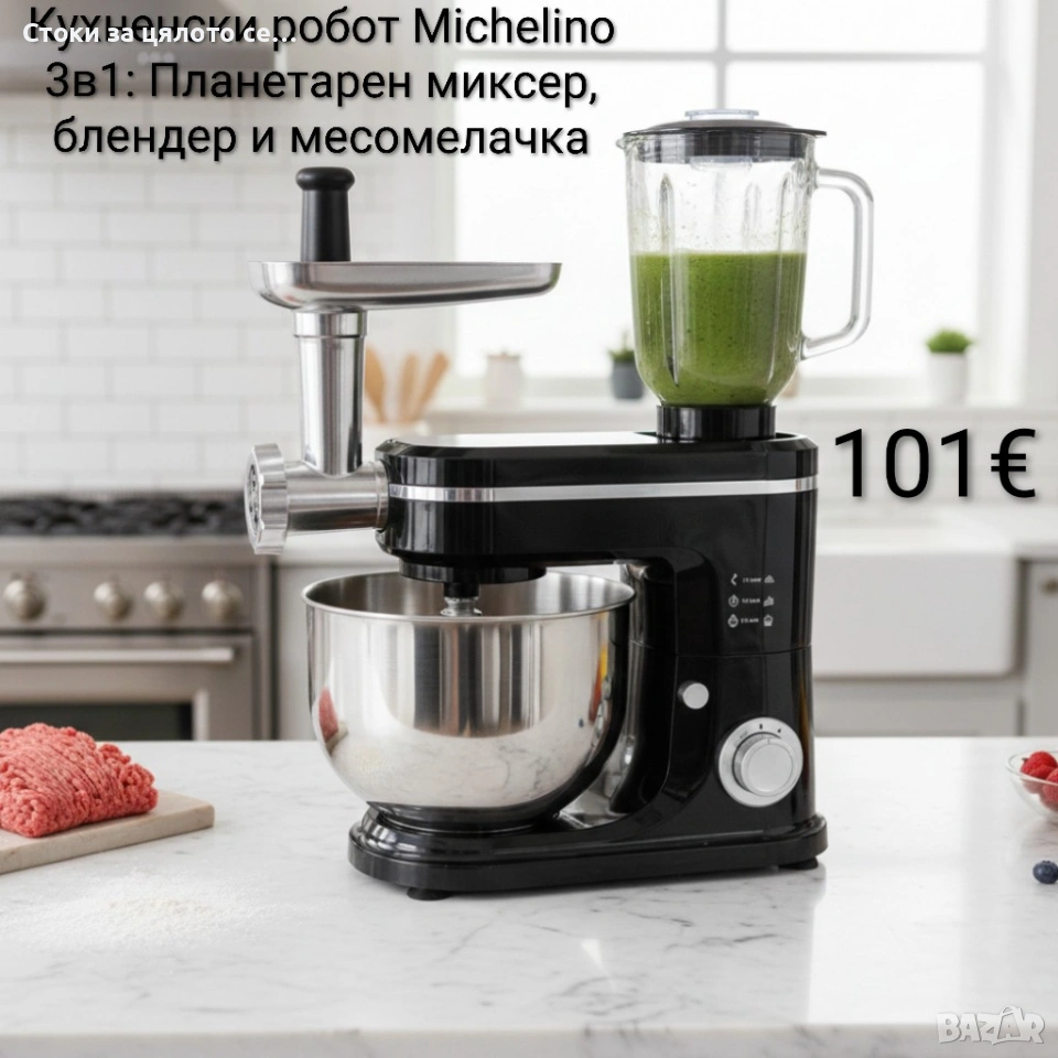 Кухненски робот Michelino 3в1: Планетарен миксер, блендер и месомелачка за лесно и бързо готвене