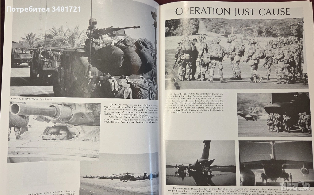 Издадена през 1990та година, книгата представя в текст, цветни и черно-бели фотографии, операции на щатската армия в различни точки на света. Фокус на книгата е визуално представяне на войници, екипировка, въоръжение и бойна техника, като текстът е около 20% от цялото ѝ съдържание. Включена е информация за различни формирования, цели на операции, облекло и екипировка, технически характеристики на механизирани средства(от танкове и хъмвита до хеликоптери), както и други специфични, военни факти.