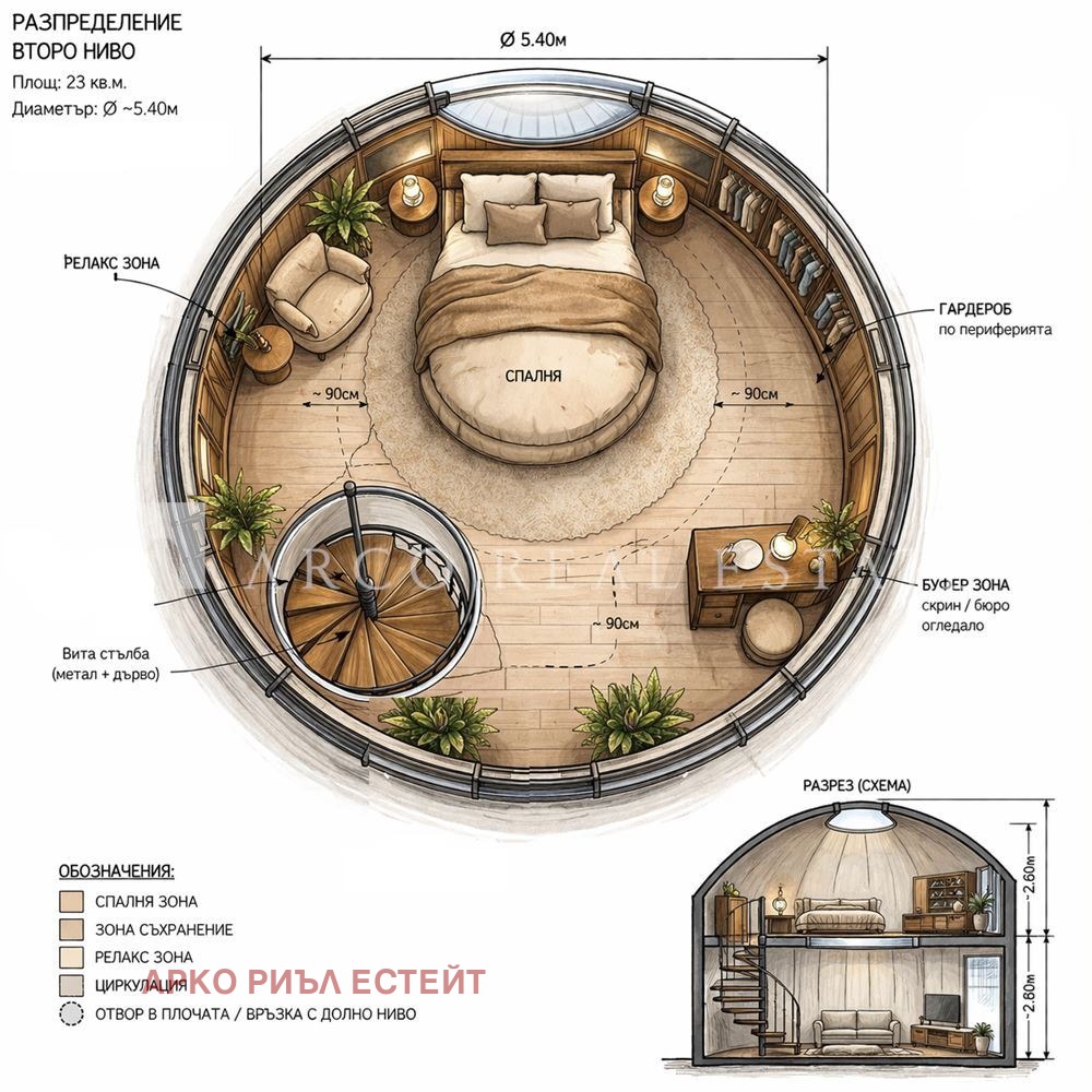 Етаж 2: Допълнителна стая (спалня/трапезария/дневна/киносалон/кабинет/Man Cave) с размер 23кв.м.