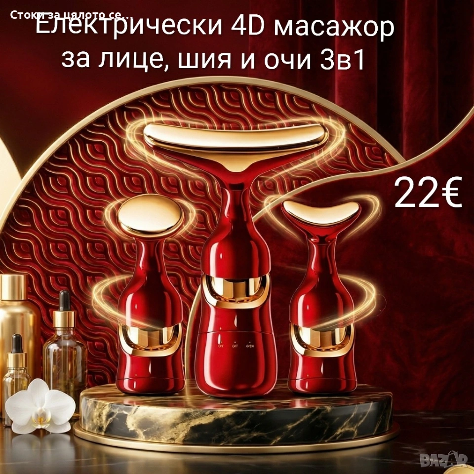 Електрически 4D масажор за лице, шия и очи 3в1 - Анти-ейдж уред с 3 сменяеми глави и лифтинг ефект за стягане