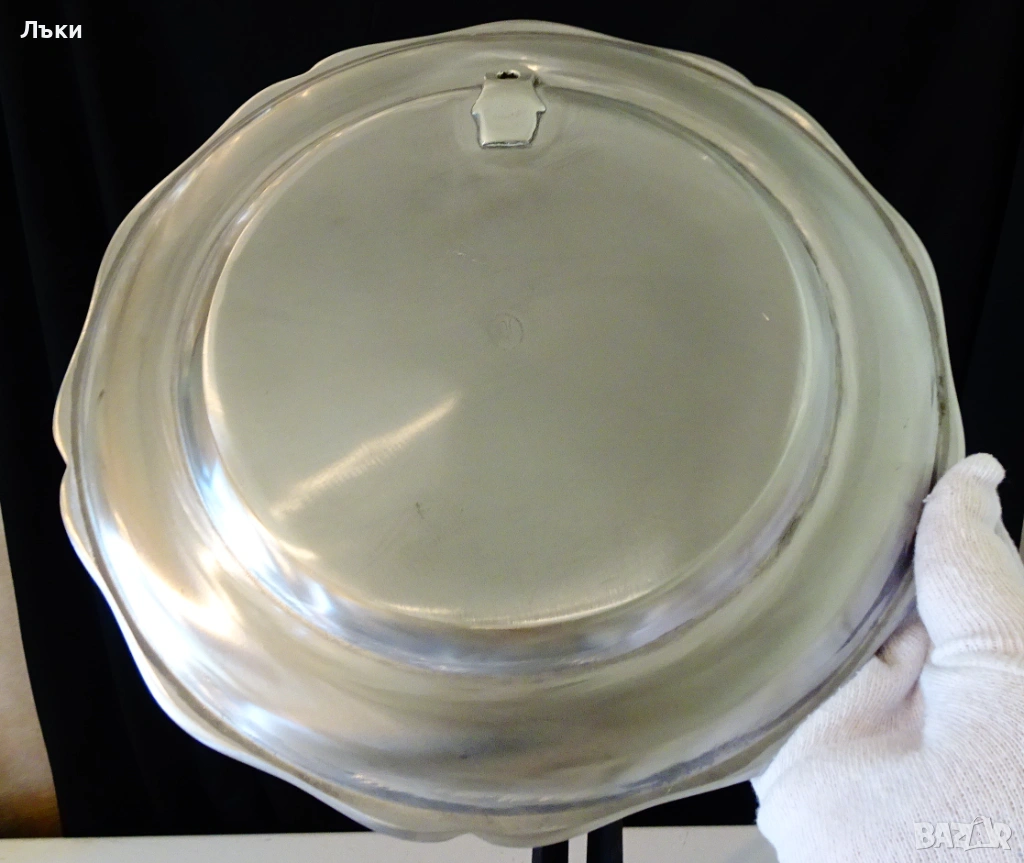 от 95% калай и 5% сребро,маркирана с релефен печат на