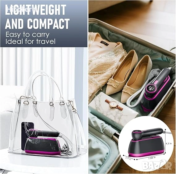 - 【Двурежимна ютия за дрехи с пара】 Ютията за дрехи с пара има функции за сухо и мокро гладене, за да отговори на вашите различни нужди. Оборудвана с въртяща се на 180° дръжка, лесно превключвайте между режими на окачване и гладене! Режим на сухо гладене: панелът се нагрява независимо и дрехите създават триизмерен ефект; режим на мокро гладене: натиснете бутона, за да напръскате деликатна пара и мощната пара премахва бръчките, а дрехите са като нови след гладене.
