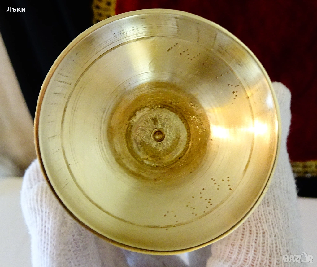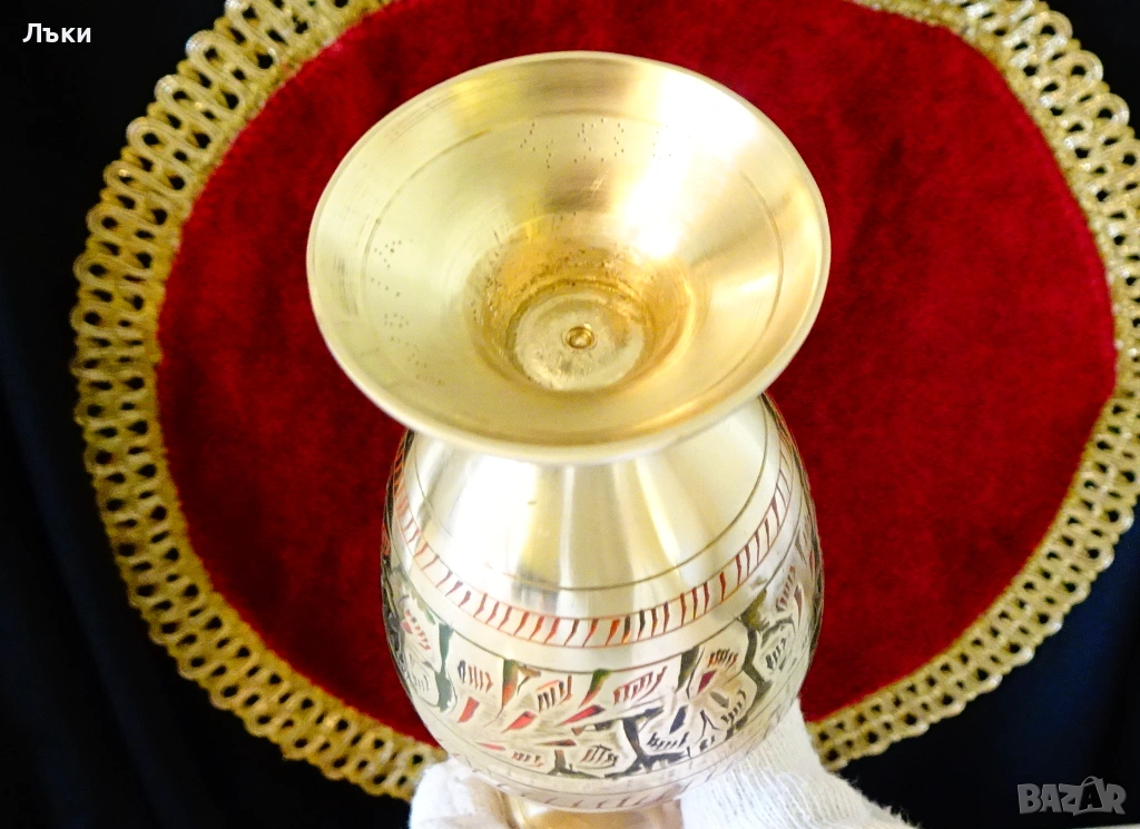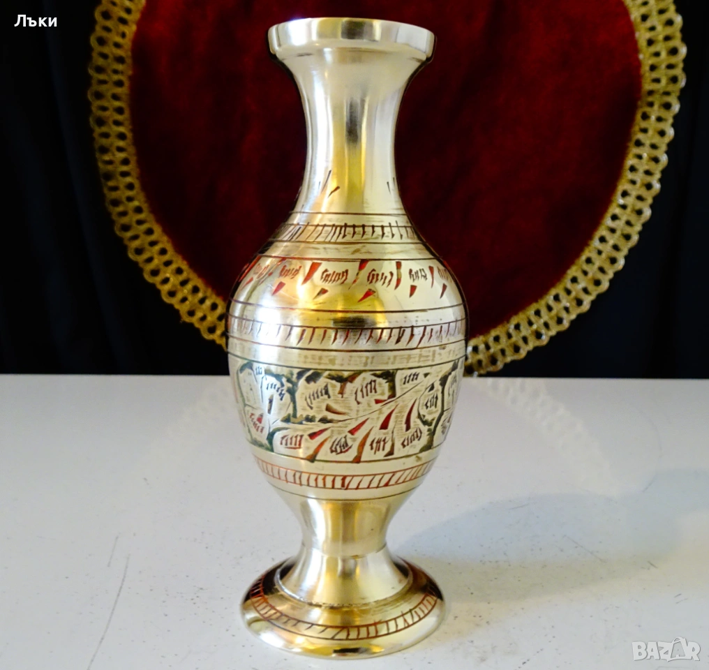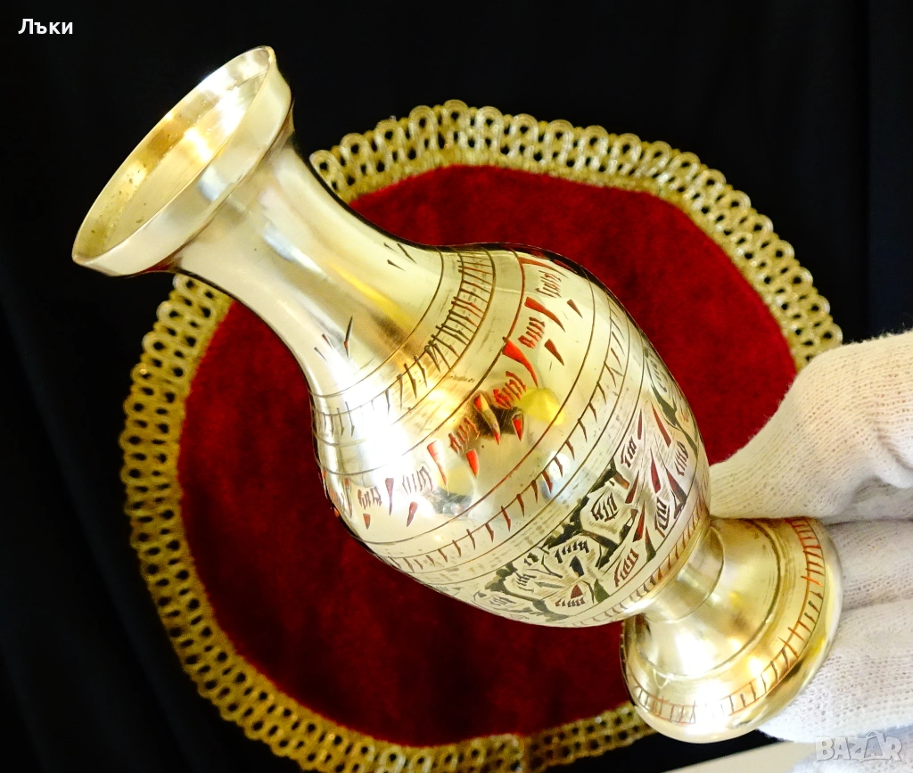 златен блясък.Маркирана с гравиран печат на производителя в Индия.Декорирана с