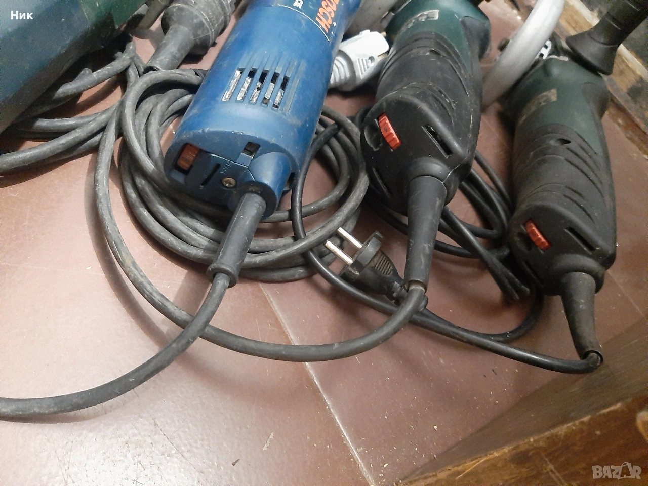 Мощни малки ъглошлайфи Метабо и Бош с обороти.