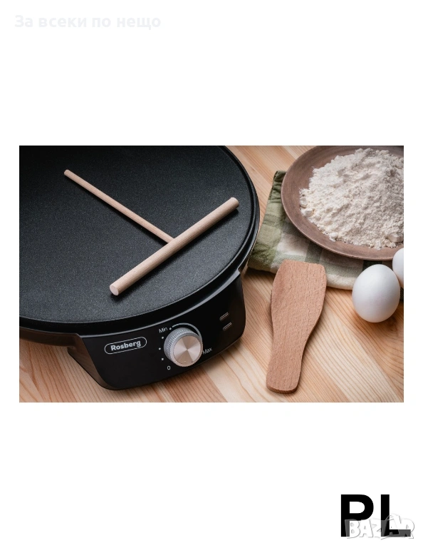 В комплекта е включена дървена T-образна пръчица, която помага за равномерното разпределение на тестото върху нагревателната плоча – така всяка палачинка става перфектна.