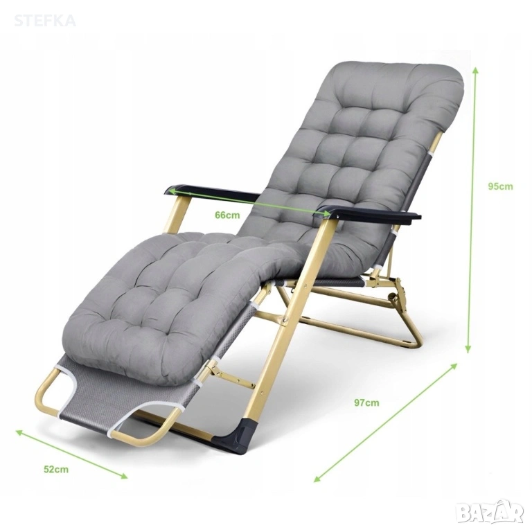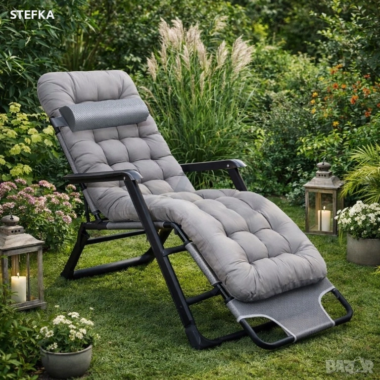 шезлонг с мека ватирана възглавница, регулируема облегалка и метална рамка