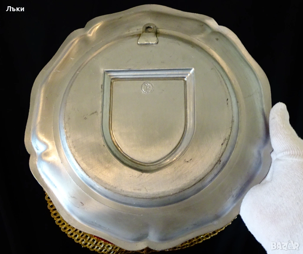 Стара калаена чиния за стена,пано,майсторска ръчна изработка