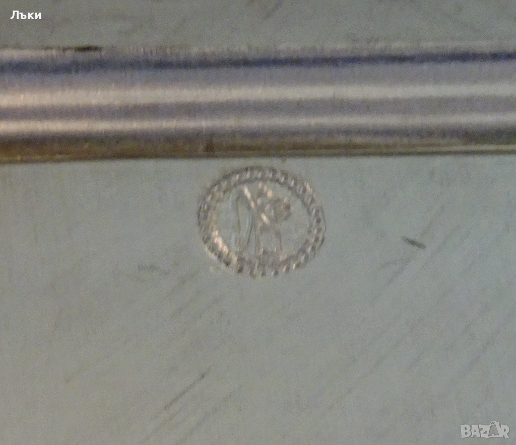 от 95% калай и 5% сребро,маркирана с релефен печат на производителя.В центъра