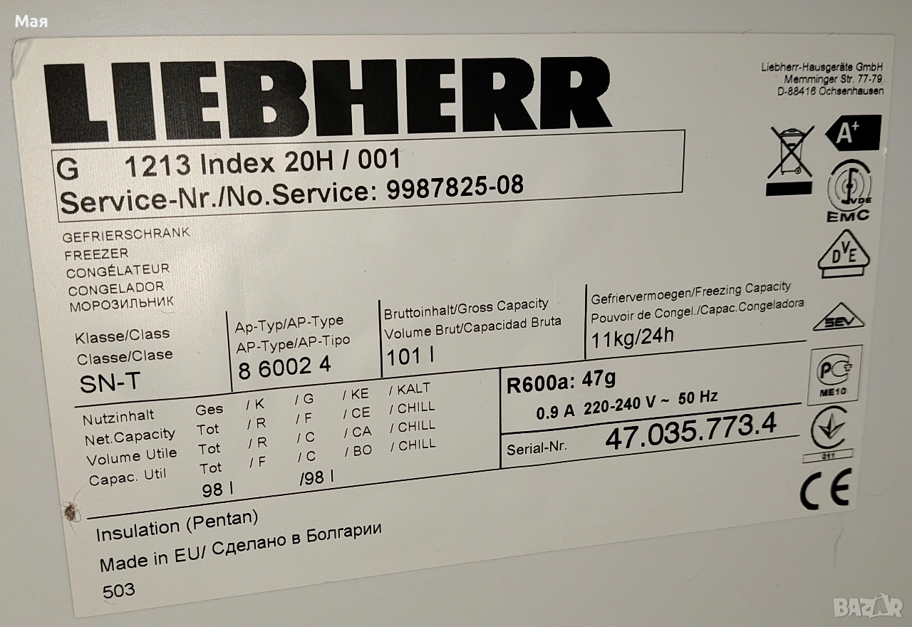 Малък фризер Liebherr 1213 SmartFrost, 100 литра