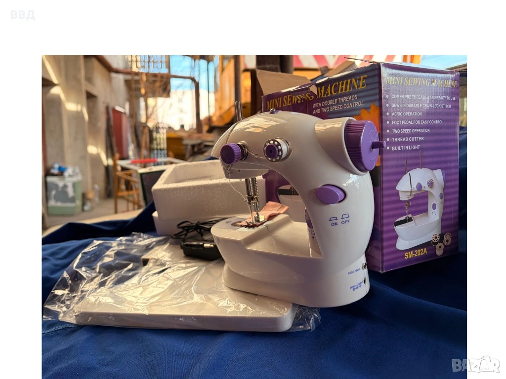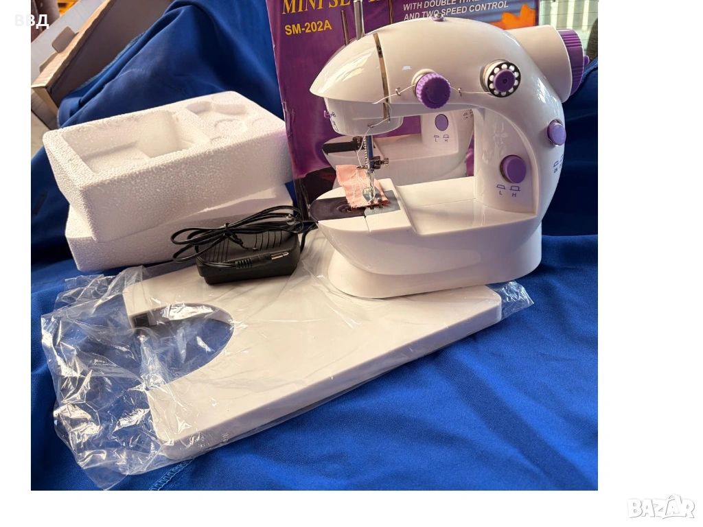 Малка електрическа шевна машина SM-202A, в оригинална опаковка. Моля направете предложение за цената. Описание: Компактна и удобна шевна машина с 5 програми, създадена за домашна употреба. Подходяща за поправки, ушиване и креативни проекти. Оборудвана със защитен предпазител за безопасност, автоматично навиване на калерчета и контрол на скоростта. Размери: 220 × 130 × 210 мм Мощност: 48 W Захранване: AC адаптер или 4 × AA батерии (не са включени) Гаранция: 12 месеца Доставка: С Еконт до 4 работни дни с опция Преглед ---