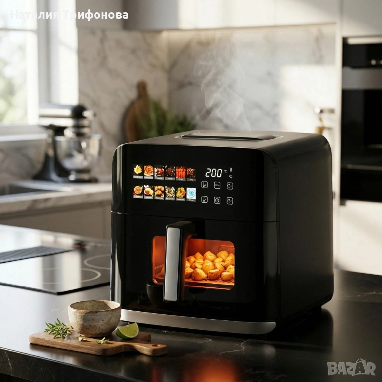 Еърфрайър Oliver Voltz OV51980CF, 1800W, 8 литра, Двоен нагревател, 12 Програми, LED дисплей и прозо