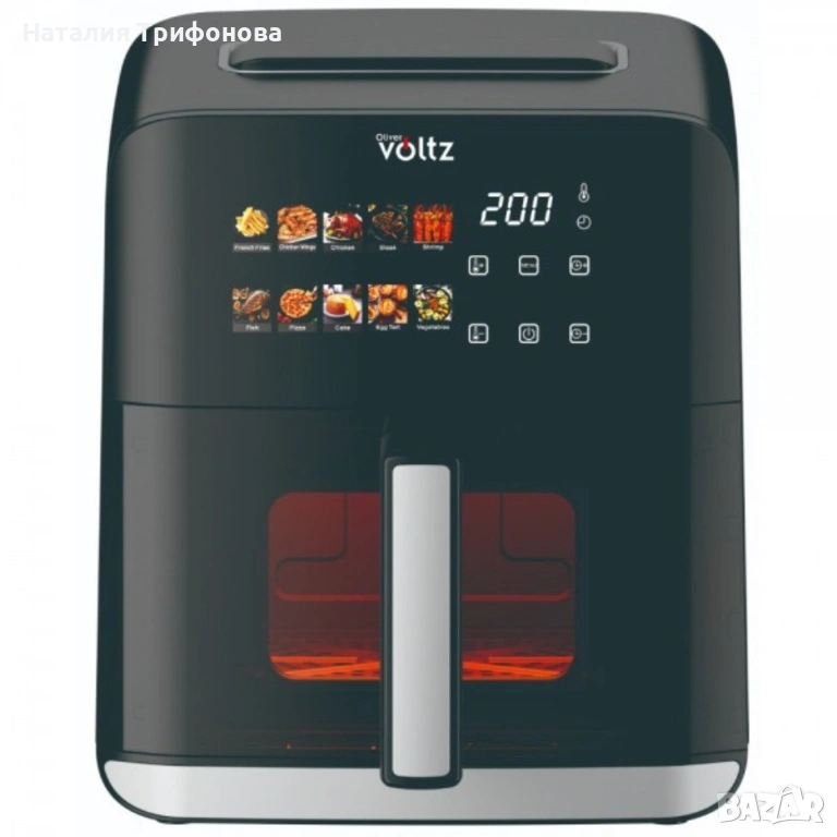 Еърфрайър с горещ въздух Oliver Voltz OV51980CE, 1200W, 4L, 10 програми, LED дисплей, прозорец
