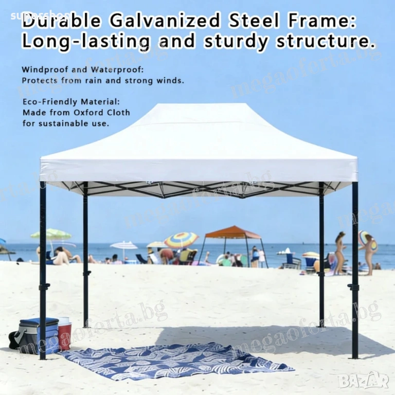 Сгъваема Шатра 3х4.50 с Усилена Конструкция и Гумирано Бяло Покривало