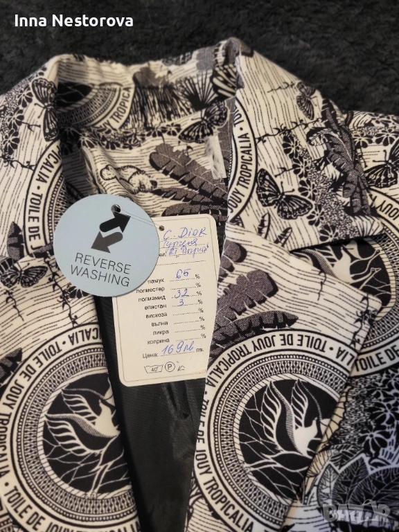Уникално сако, лъскава материя като сатен.