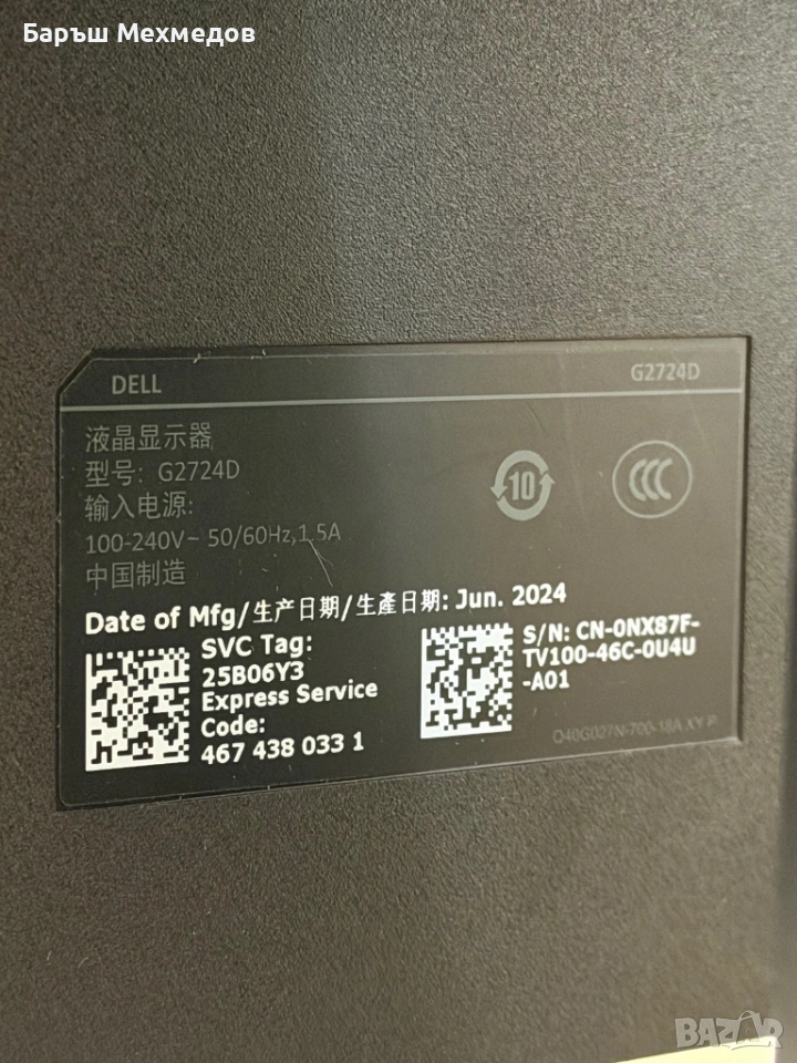 геймърски монитор Dell G2724D, закупен на 17.02.2025 г. от Ozone.bg. Мониторът е в безупречно състояние – буквално като нов, без никакви козметични забележки по корпуса или екрана и без никакви дефектни пиксели.