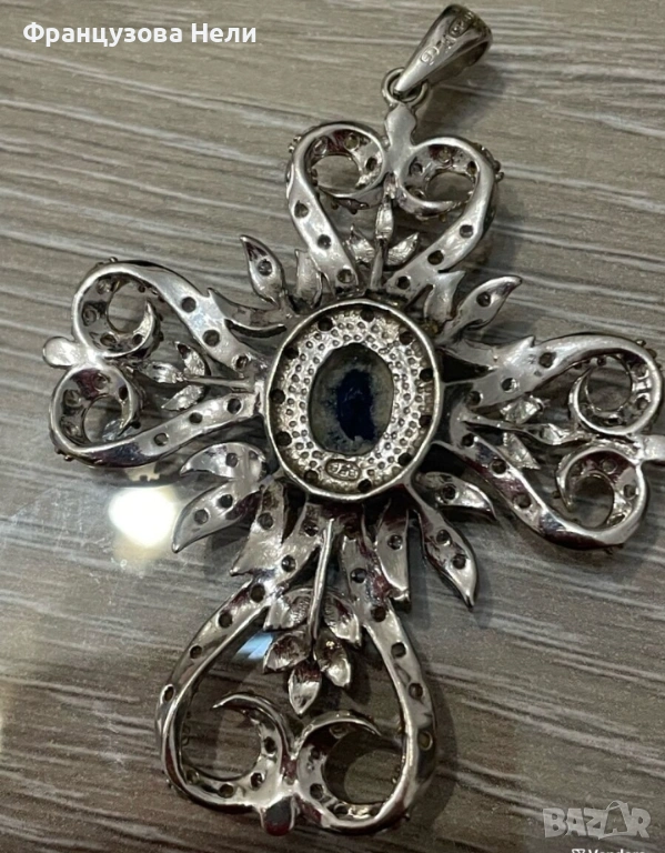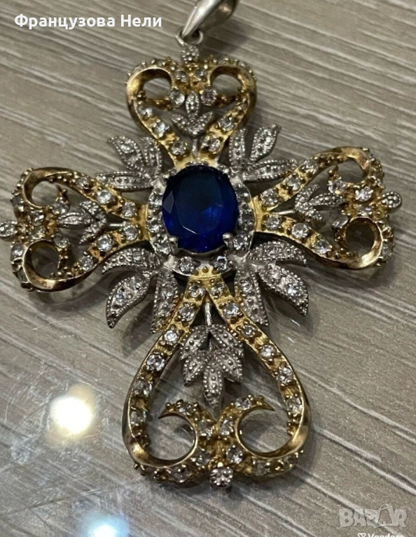 Сребърен кръст с Танзания и сапфири → Обява 54169117