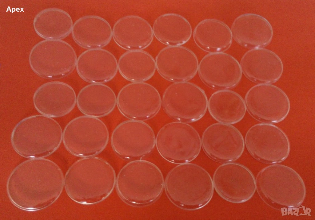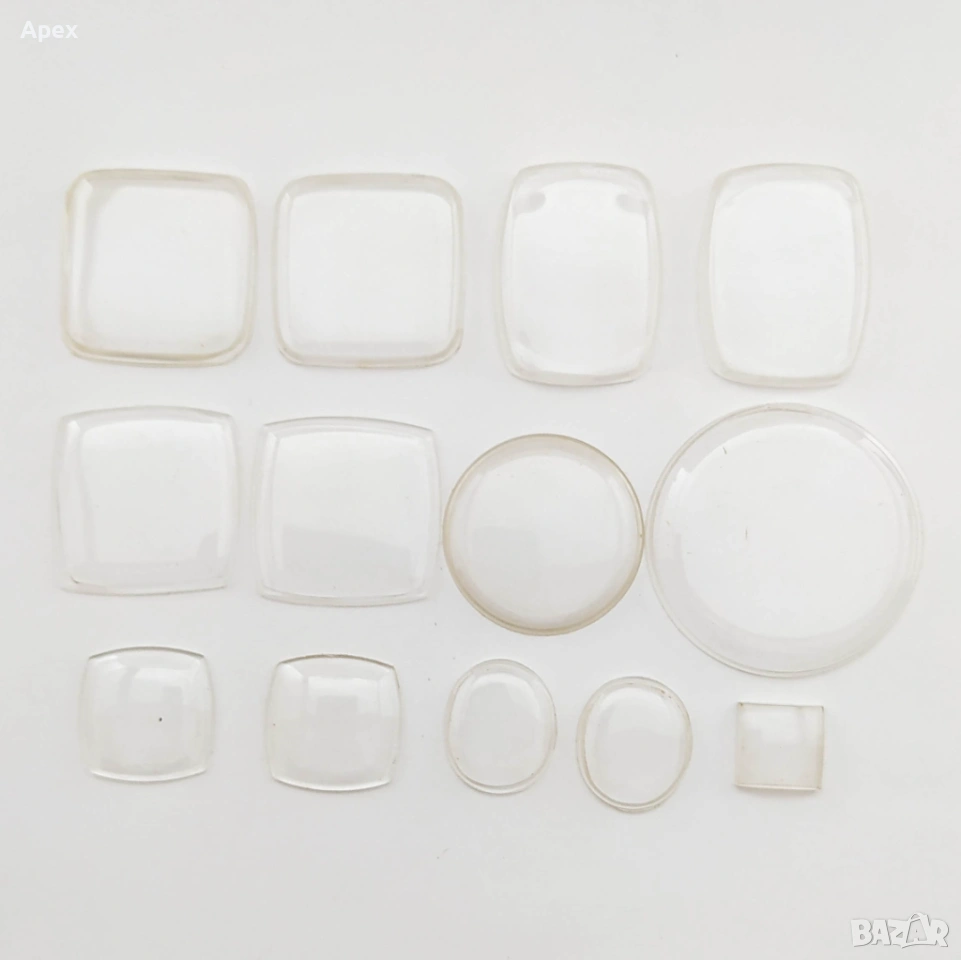 -МИНЕРАЛНИ (КРИСТАЛНИ) СТЪКЛА: Кръгли, плоски.
