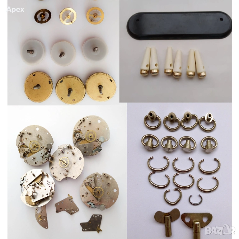 ЧАСТИ ЗА ЧАСОВНИКАРИ: Баланси баланс оси стъкла анкери ремонтоари коронки колелета уплътнения за капак катарами и удължители за верижки. Части за механични и кварцови модели (Seiko
