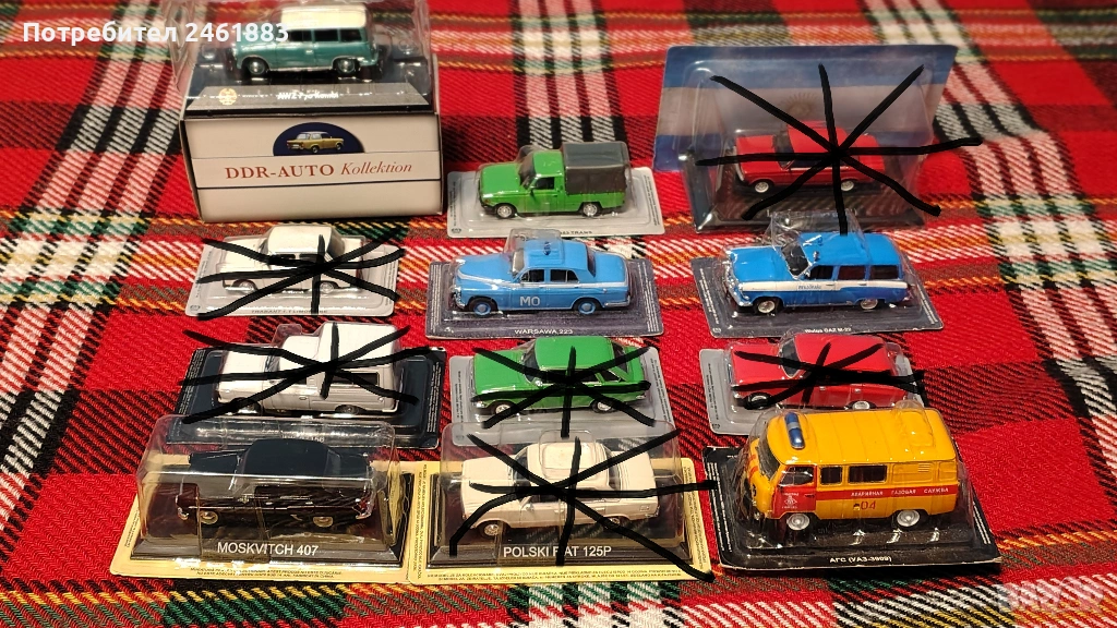1/43 метални колекционерски колички Москвич Волга УАЗ Вартбург → Обява 54169274
