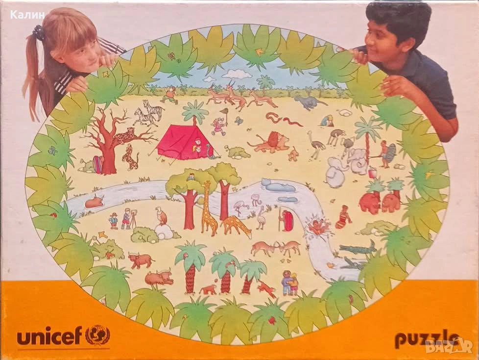 Продавам „Unicef Puzzle: The Adventurers” в оригинална кутия, printed in the Federal Republic of Germany. Пъзела „Unicef Puzzle: The Adventurers” е с размери 59/44 см., съдържа пълният комплект от 200 части и се предлага на 50 евро.