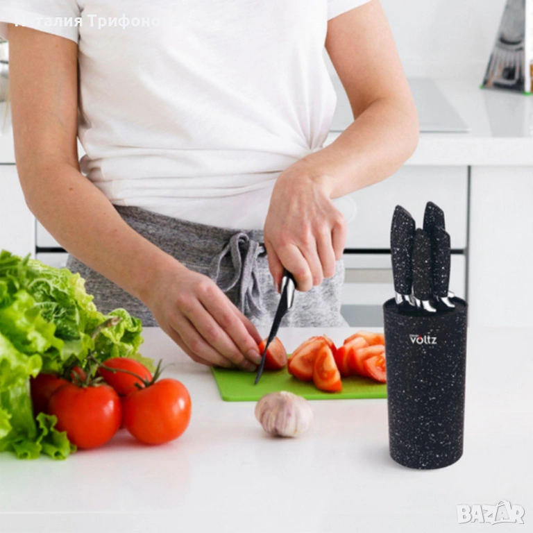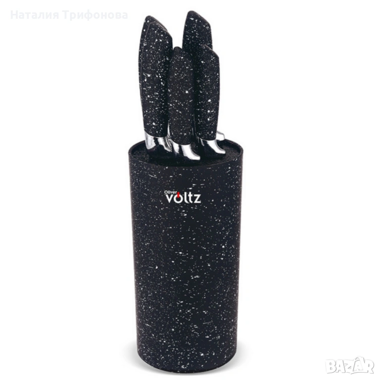 Комплект ножове Voltz с мраморно покритие и стойка – Стил, острота и удобство за перфектна кухня 5OV51633G5/5V51633G5W