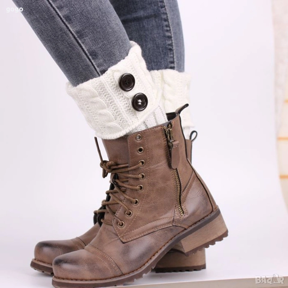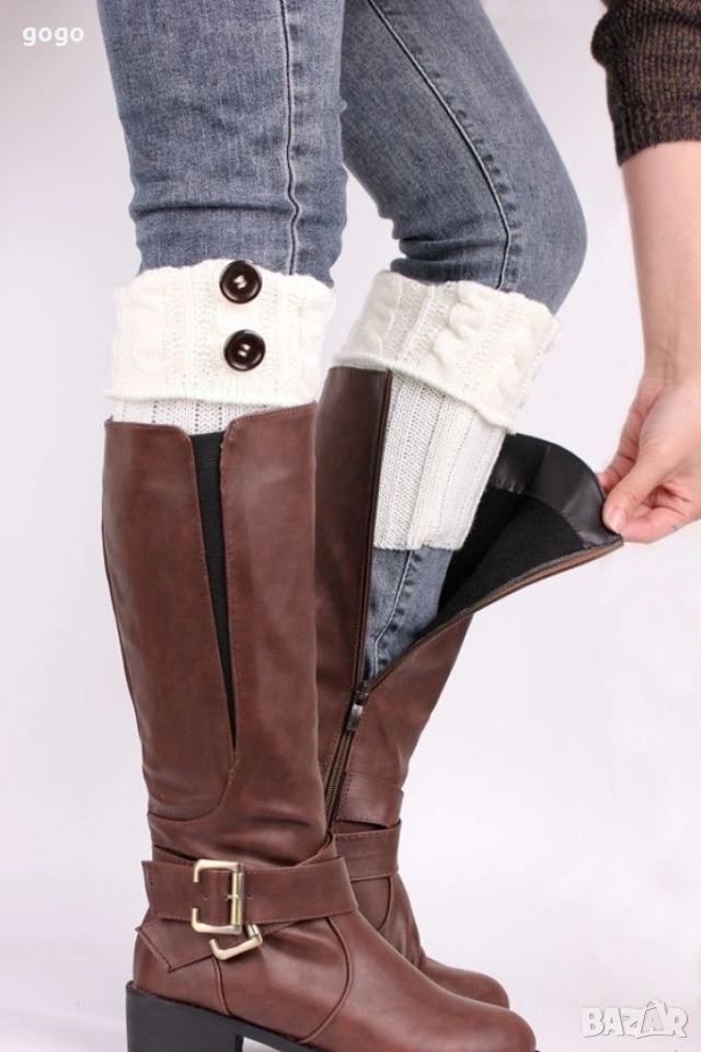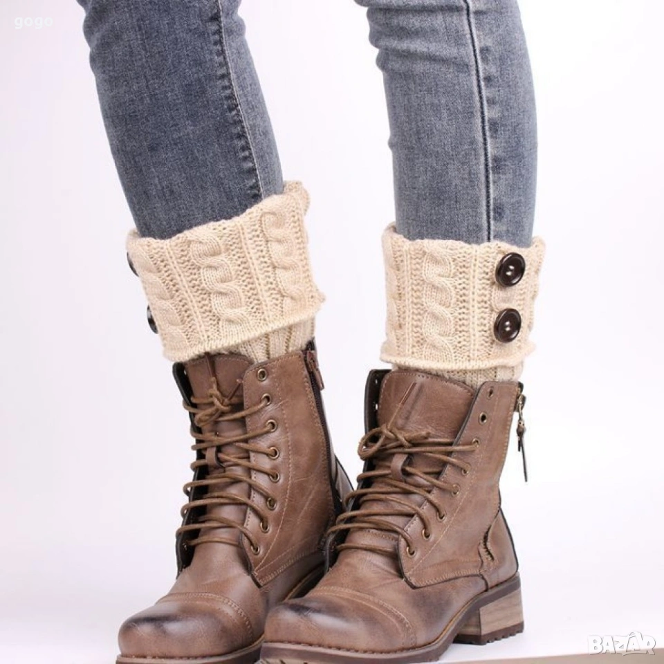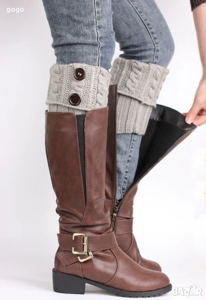 Дамски вълнени плетени гети без пръсти, различни цветове Цена: 10 евро Сивите: 7 евро Два броя: 14 евро Дамски вълнени плетени гети без пръсти. Ефектен дизайн, който позволява да се носят с боти или къси ботуши. Ефективно предпазват глезените и прасците от студ и изглеждат страхотно.