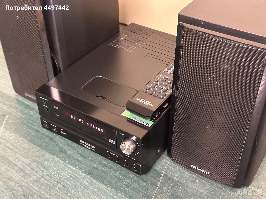 Продава се стилна и компактна аудио система Sharp, която предлага отлично качество на звука в малък формат. Системата е изключително гъвкава, поддържайки както класически дискове, така и модерни цифрови източници. Включва оригинално дистанционно управление.
