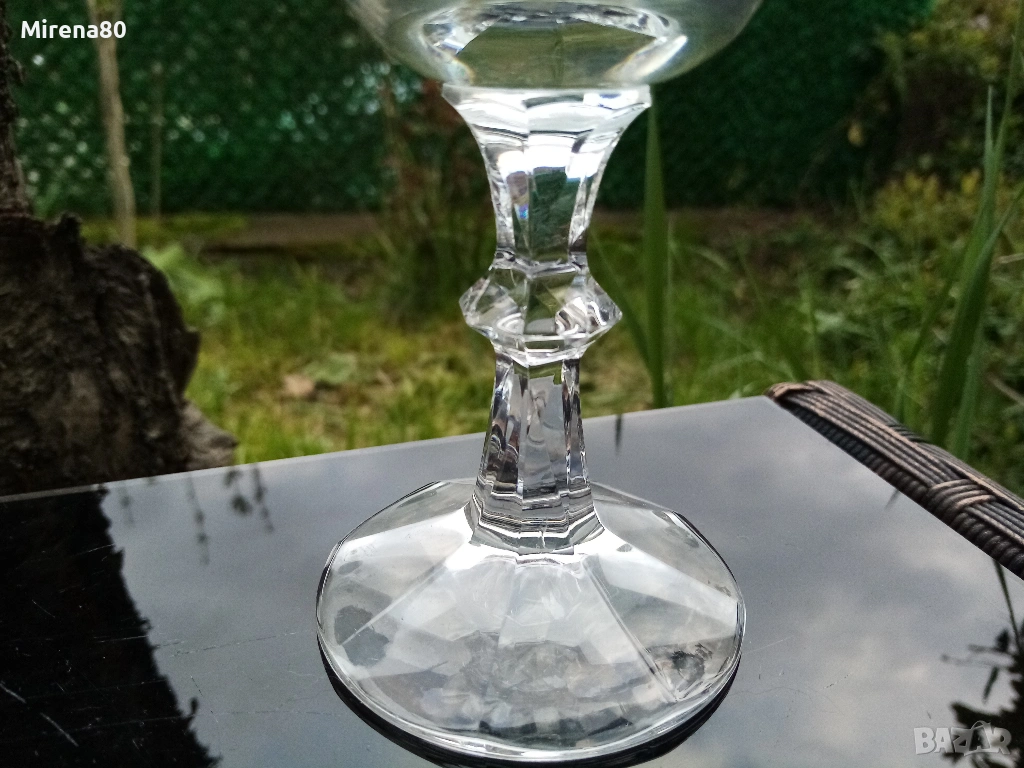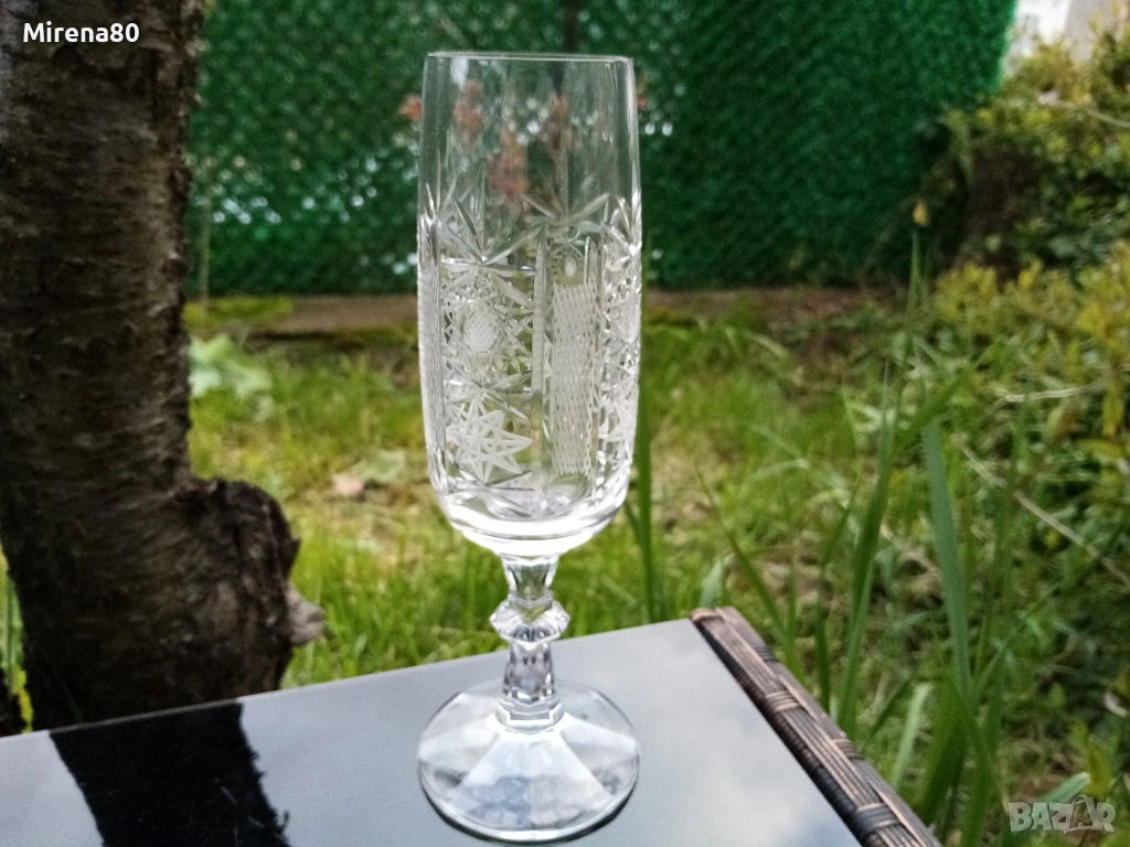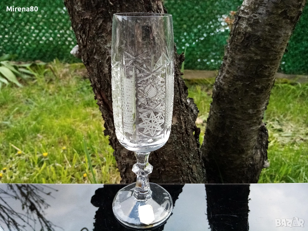 гравирани - ръчна изработка. Ясен кристален звън и много блясък. Вмест. 200 мл, вис. 20, диам. 6 см. Нови, с етикетчета !